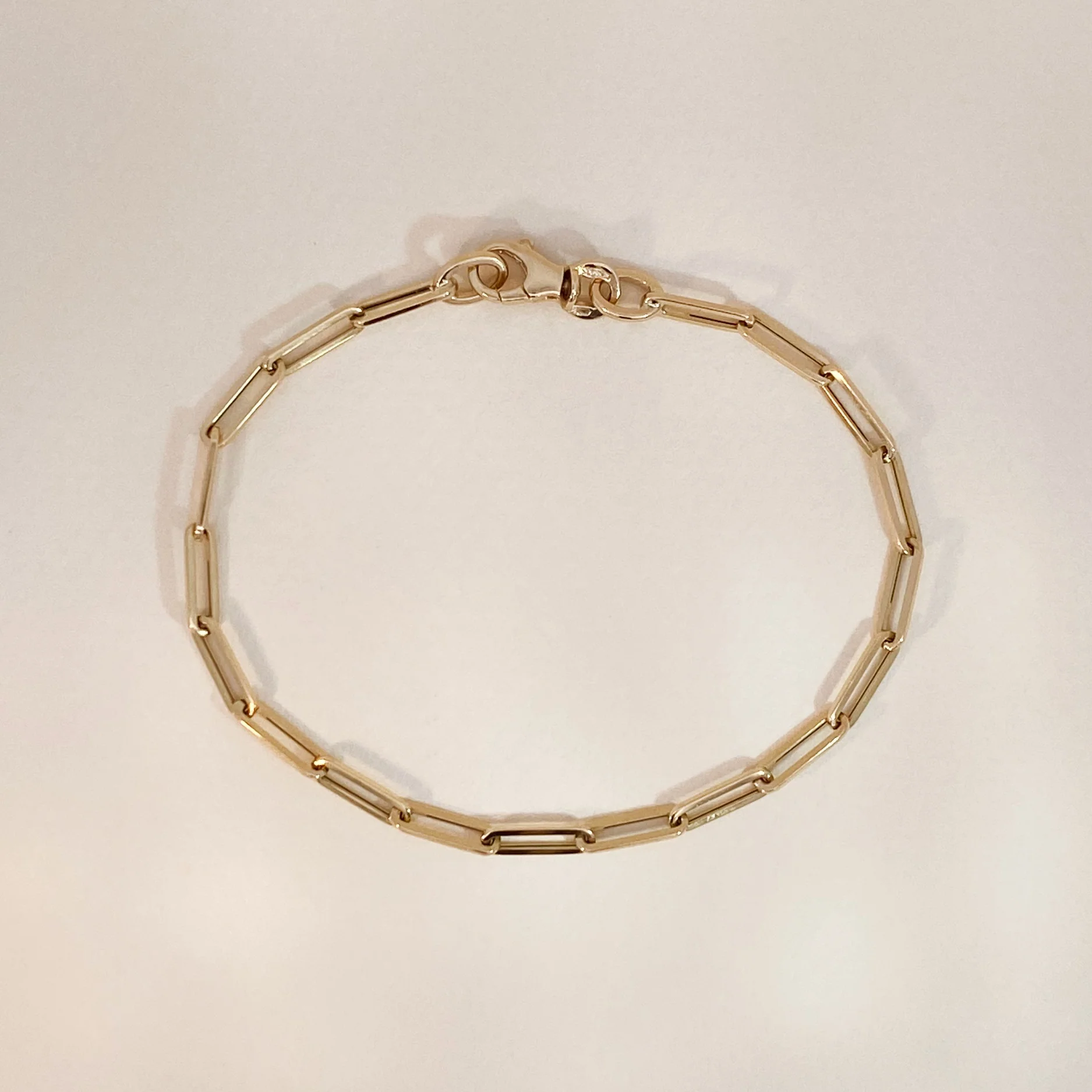Our 14k gold paperclip bracelet is a simple piece of sophistication. Elegant either styled on its own or paired with other bracelets to be worn as a stacked piece.